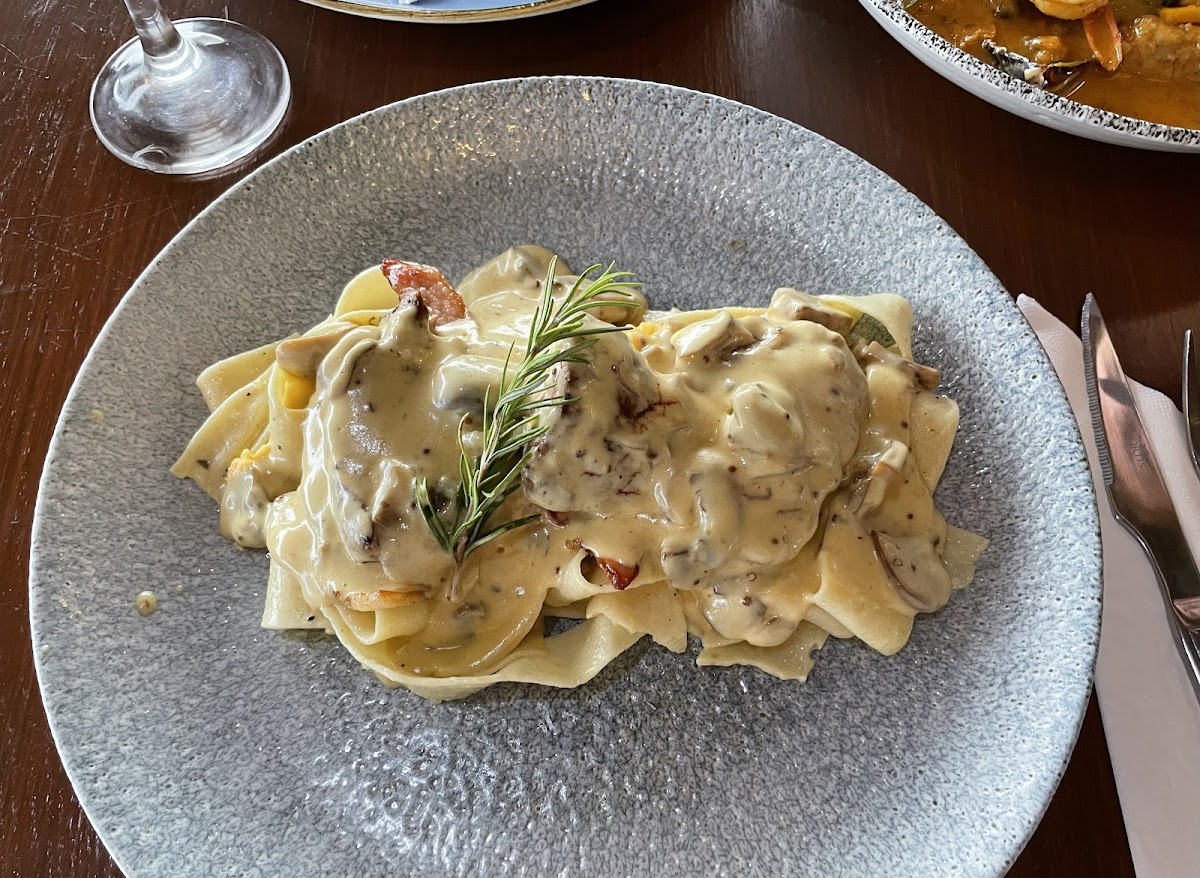 Food was great . The waiters are friendly and efficient. Was a bit disappointed that they do not allow a half and half pizza over the festive period which made it difficult to order as we had different dietary requirements. Think the flexibility to order half and half pizza would be really great for customers even over the festive period. Overall , a great experience and would highly recommend it if you are in the area. I had the eisbein which I would recommend if you are a pork lover. My wife had the Dorado which was amazing. My son being a burger lover had the burger and really enjoyed it. Definitely a place I would come back to just don't expect a half and half pizza over a peak period.