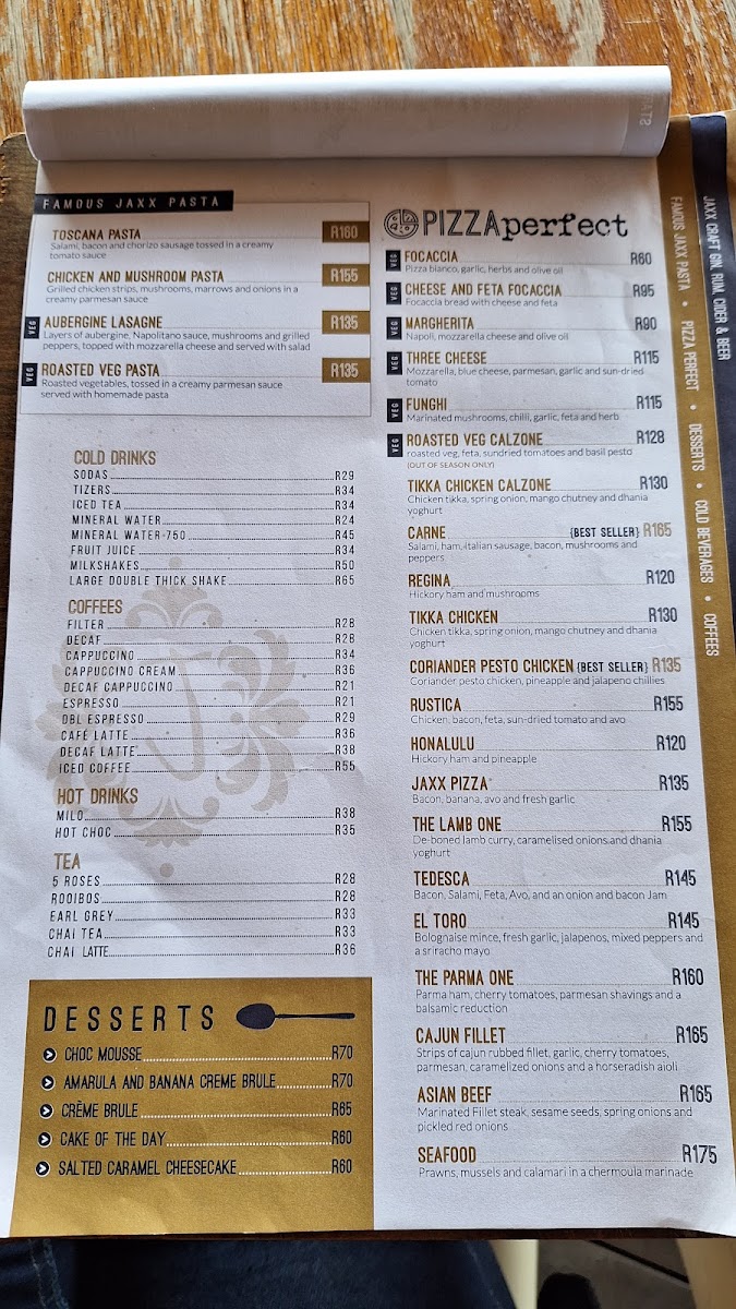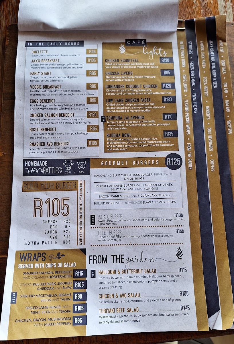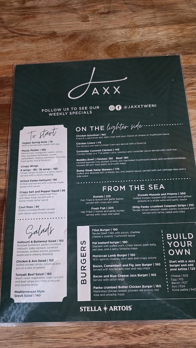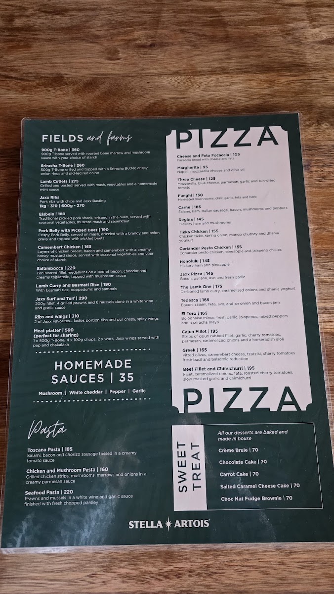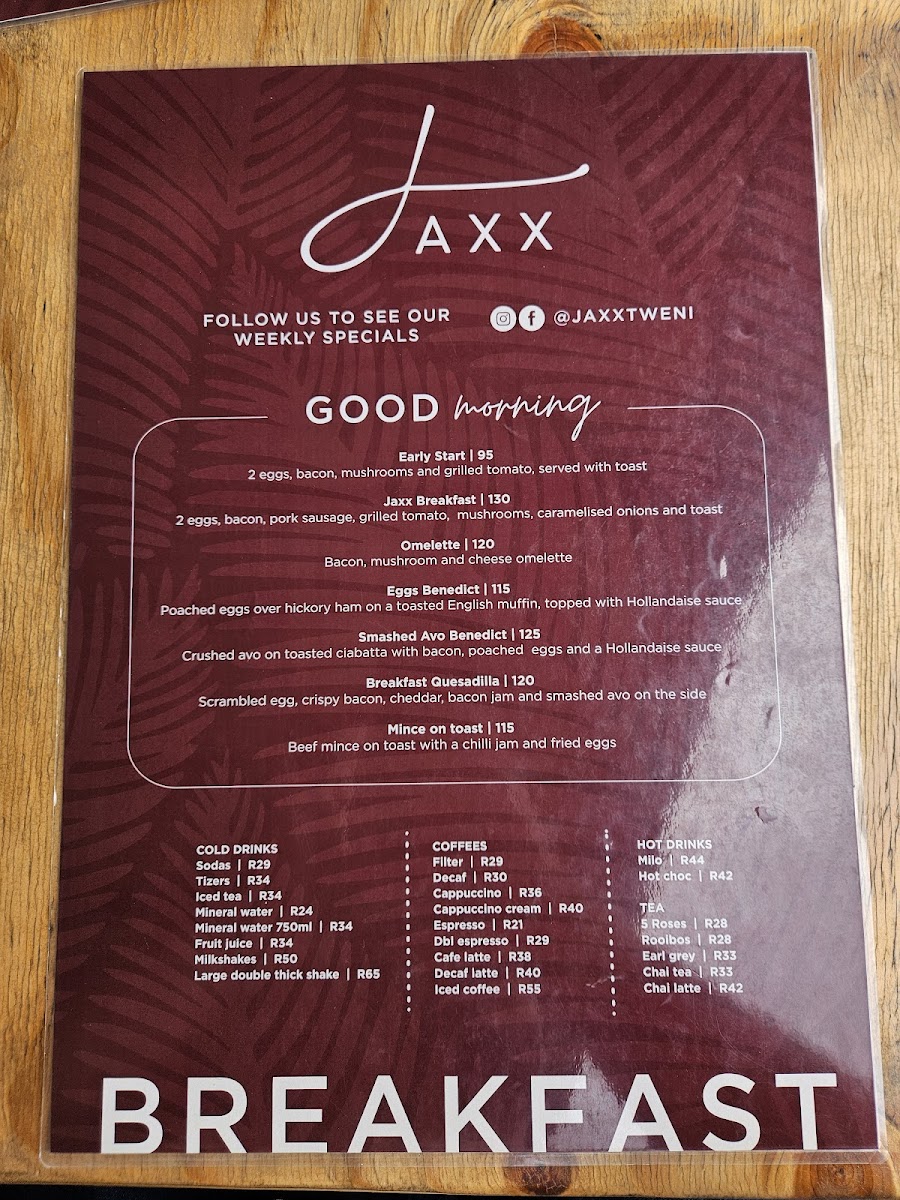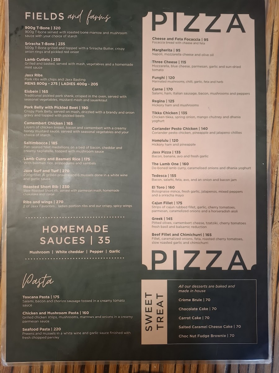 Jaxx Restaurant Menu